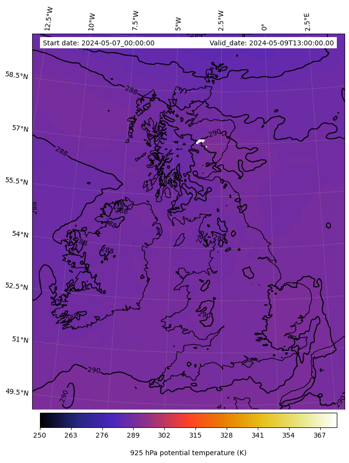 - Equivalent Potential Temperature (K)