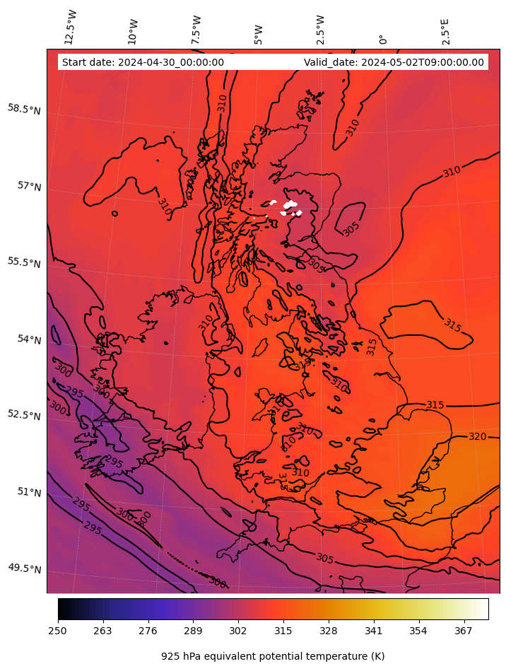 - Equivalent Potential Temperature (K)