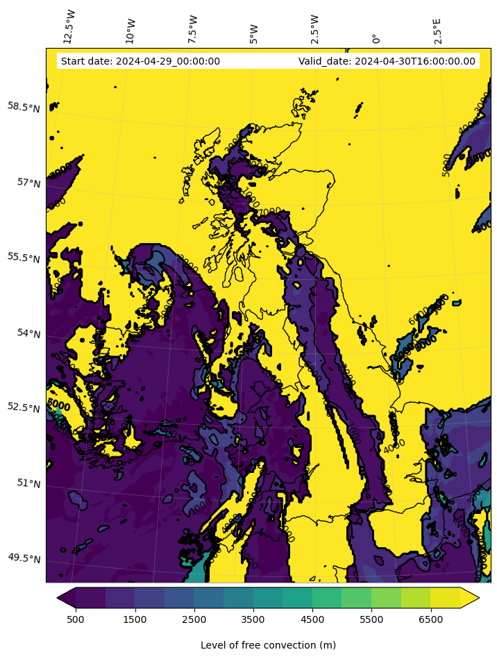 • Level of free convection (m)