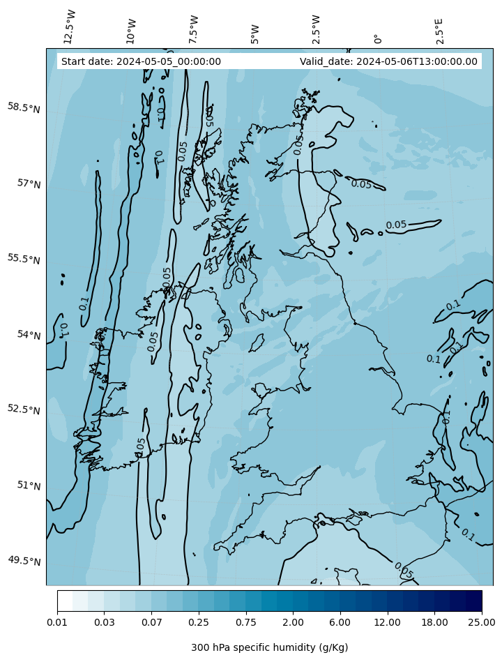 - Cloud water mixing ratio (g kg¯¹)
