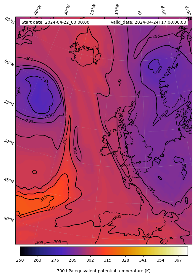 - Equivalent Potential Temperature (K)