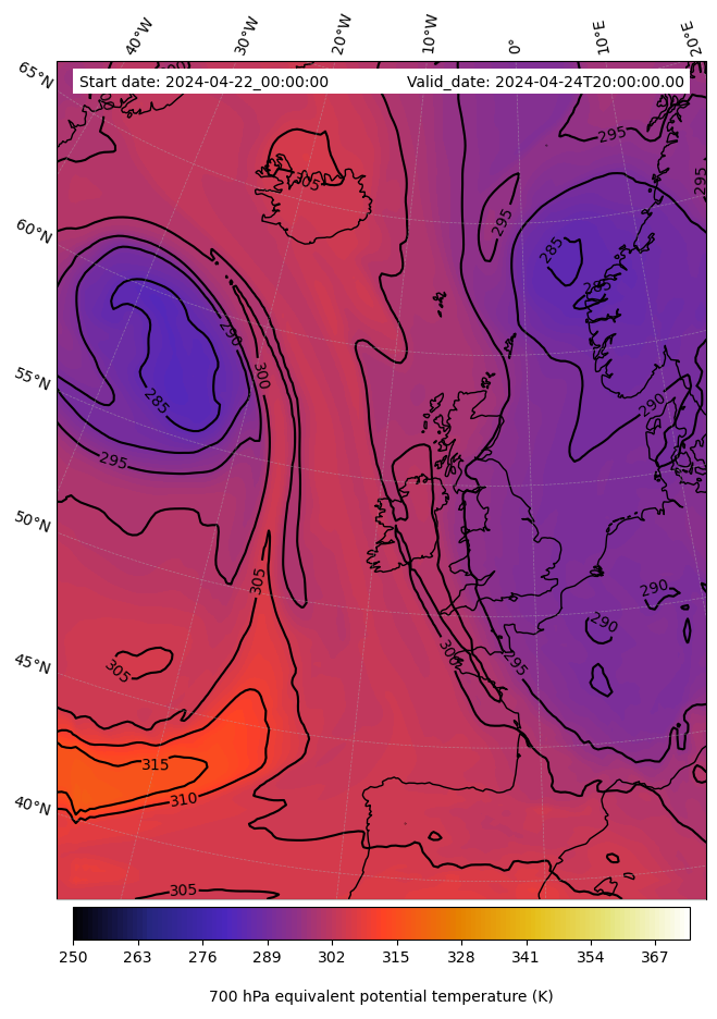 - Equivalent Potential Temperature (K)