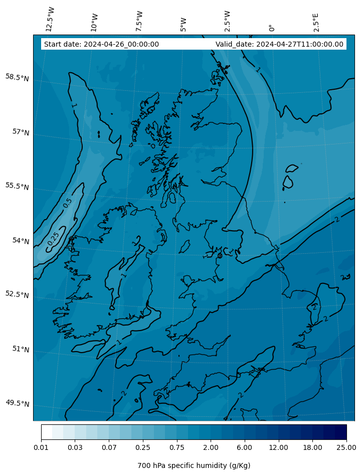 - Water vapor mixing ratio (g kg¯¹)