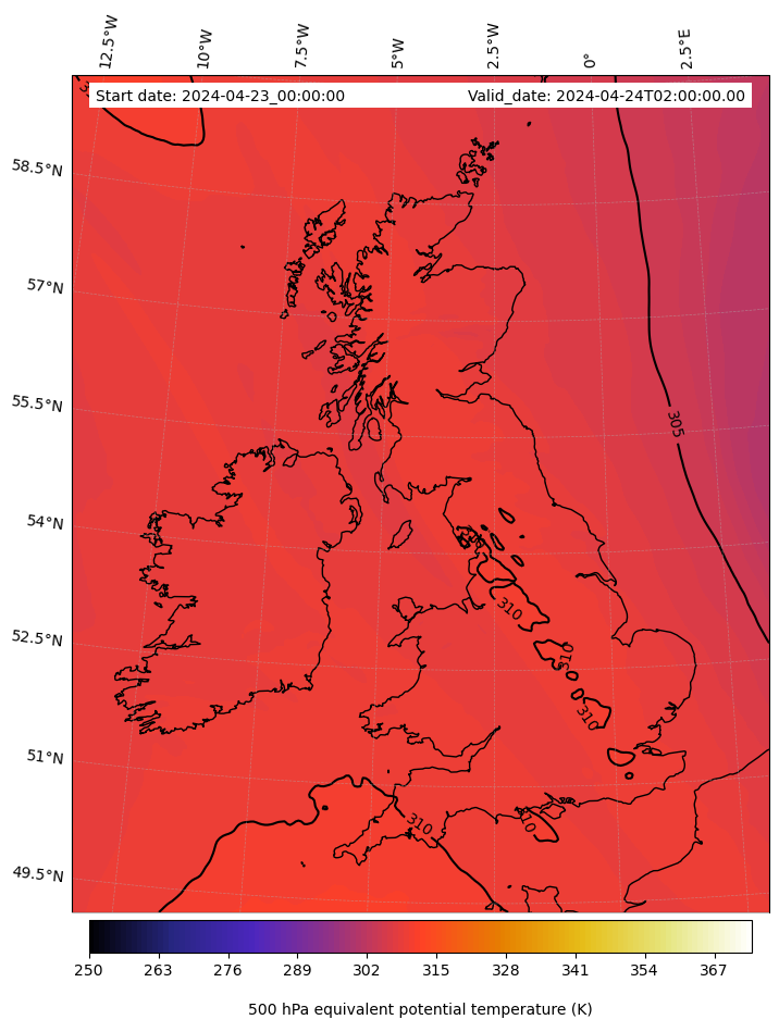 - Equivalent Potential Temperature (K)