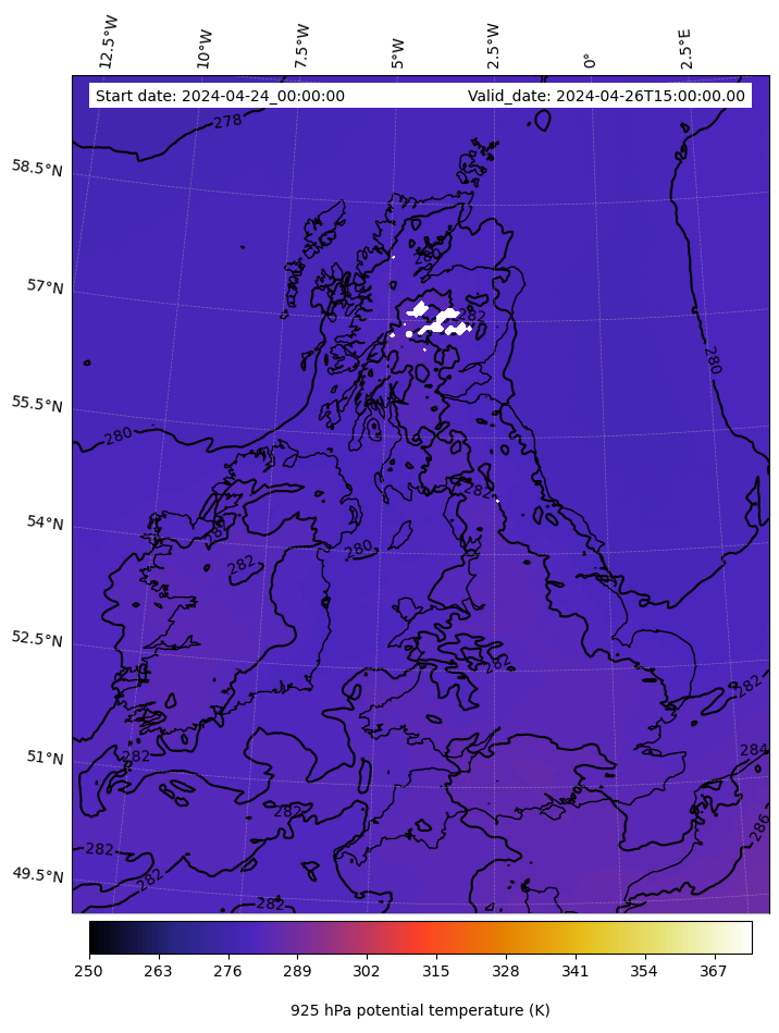- Equivalent Potential Temperature (K)