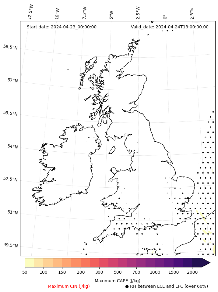 - Maximum CAPE (J/Kg)
