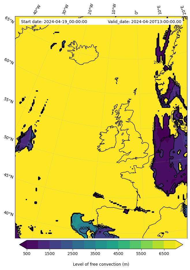 - Level of free convection (m)