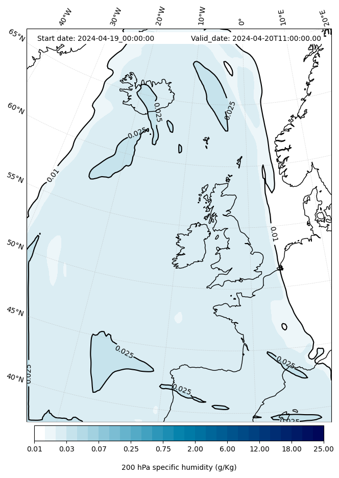 - Cloud water mixing ratio (g kg¯¹)