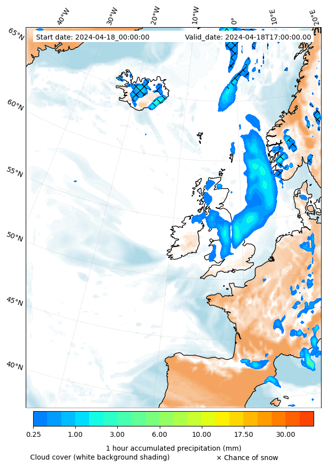 - Snow mixing ratio (g kg¯¹)