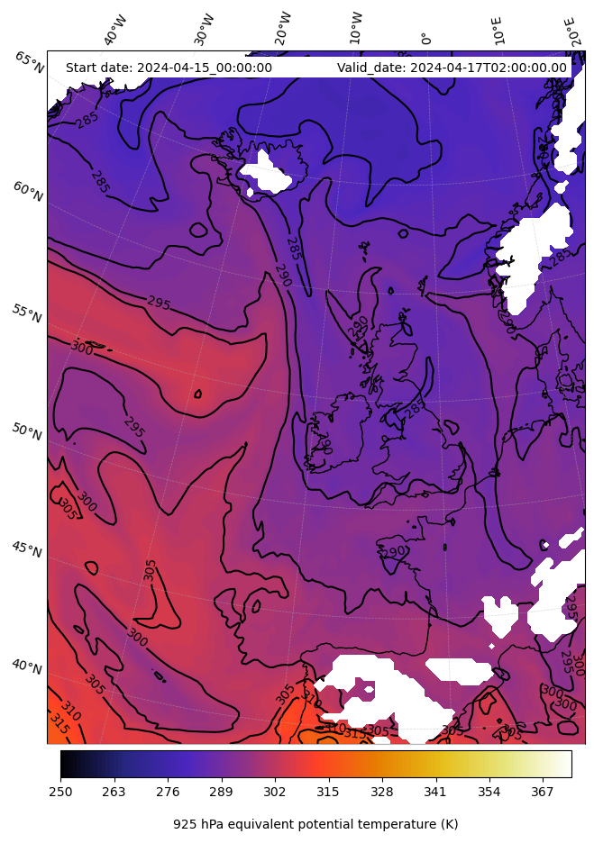 - Equivalent Potential Temperature (K)