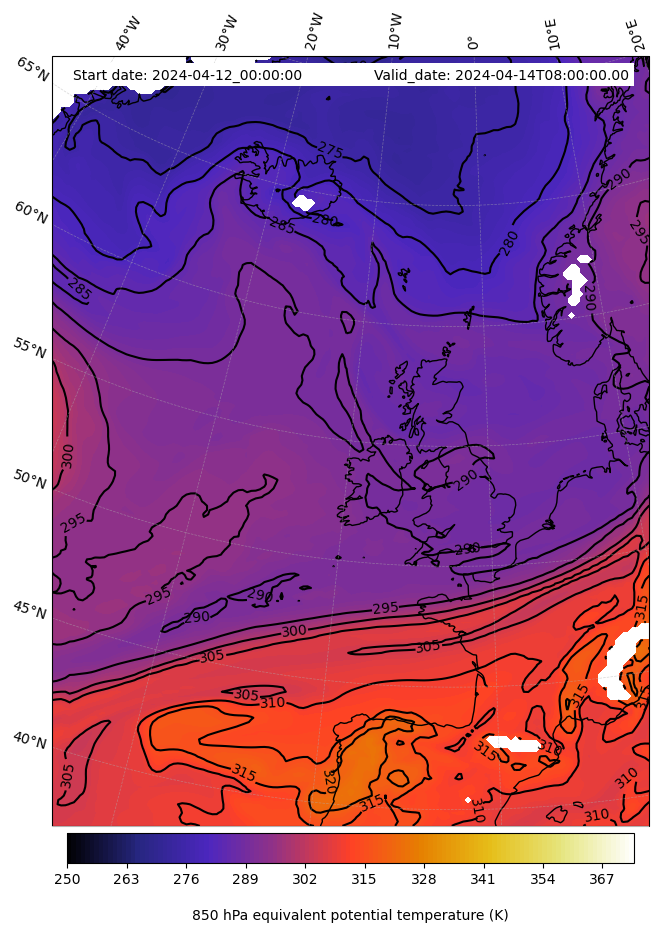 - Equivalent Potential Temperature (K)