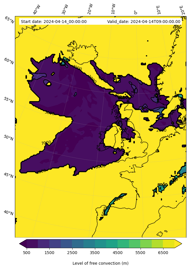 - Level of free convection (m)