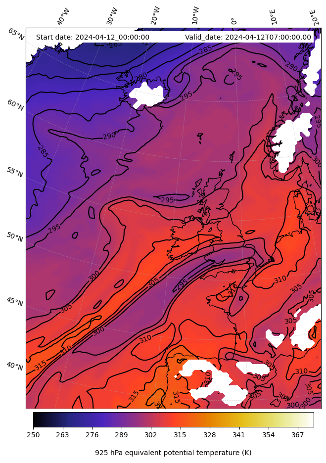 - Equivalent Potential Temperature (K)