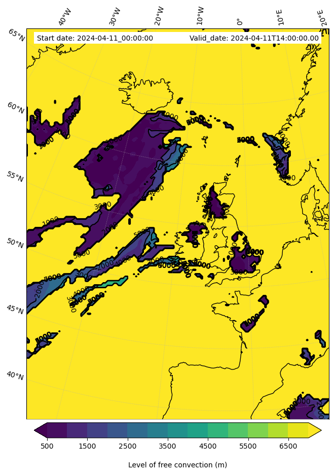 - Level of free convection (m)