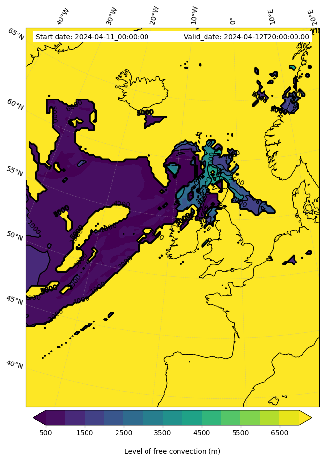 - Level of free convection (m)