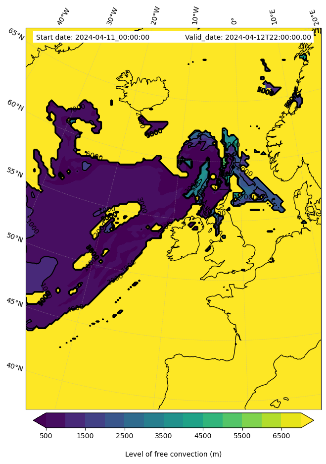 • Level of free convection (m)