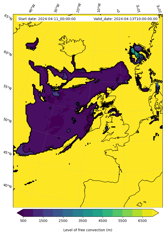 - Level of free convection (m)
