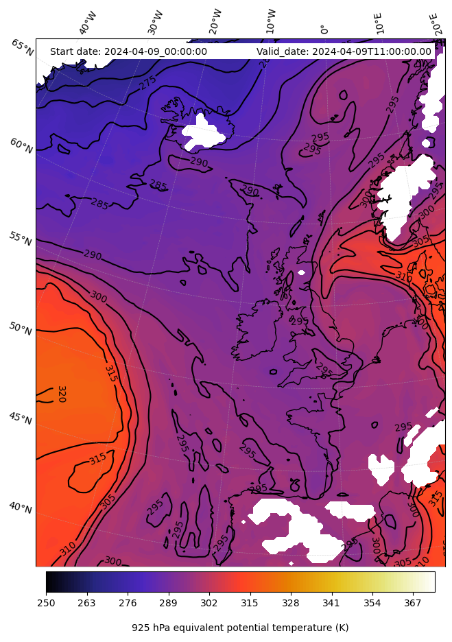 - Equivalent Potential Temperature (K)