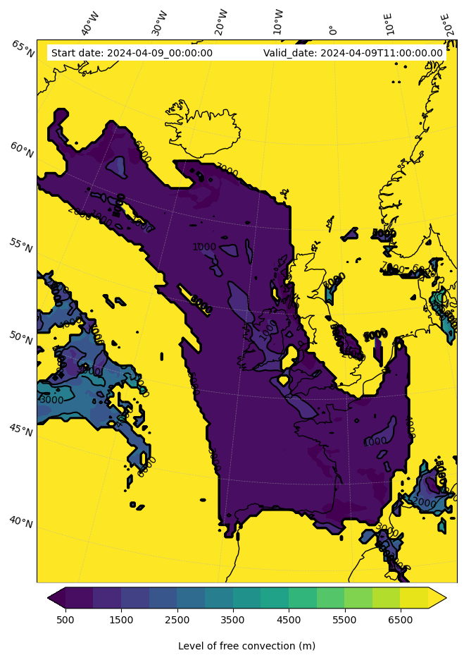 - Level of free convection (m)