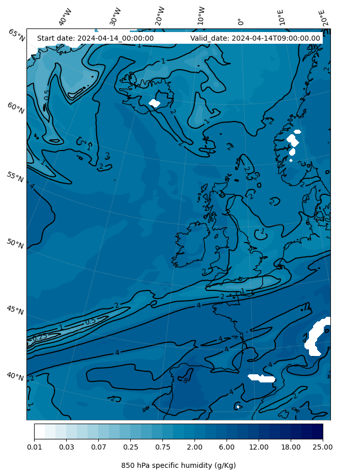 - Water vapor mixing ratio (g kg¯¹)