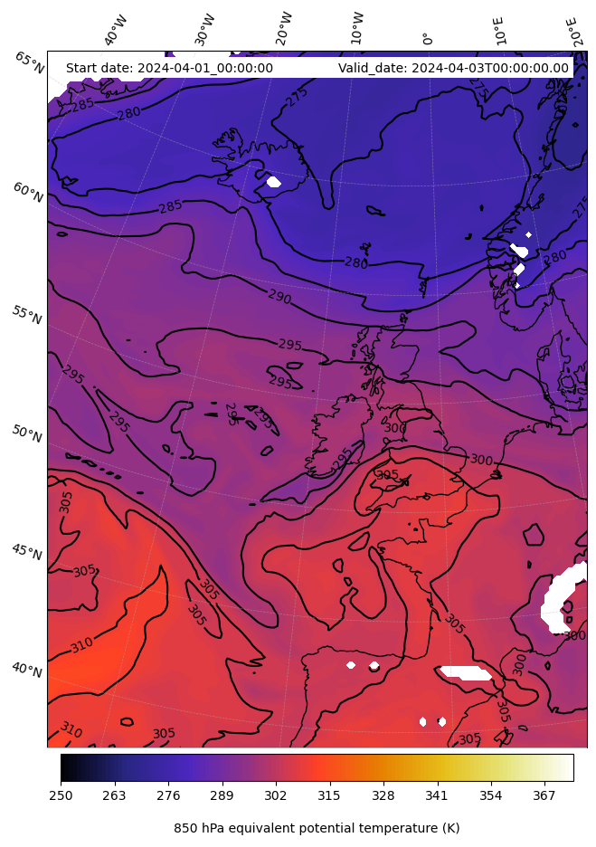 - Equivalent Potential Temperature (K)