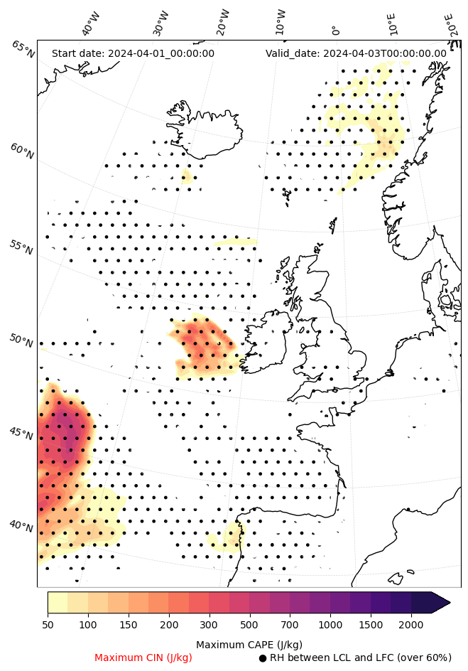 - Maximum CAPE (J/Kg)