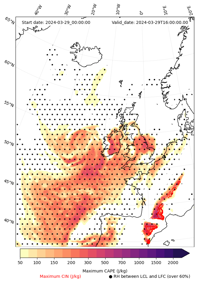 - Maximum CAPE (J/Kg)