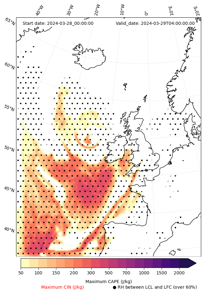 - Maximum CAPE (J/Kg)