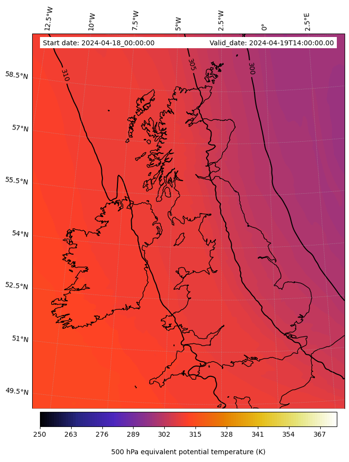 - Equivalent Potential Temperature (K)