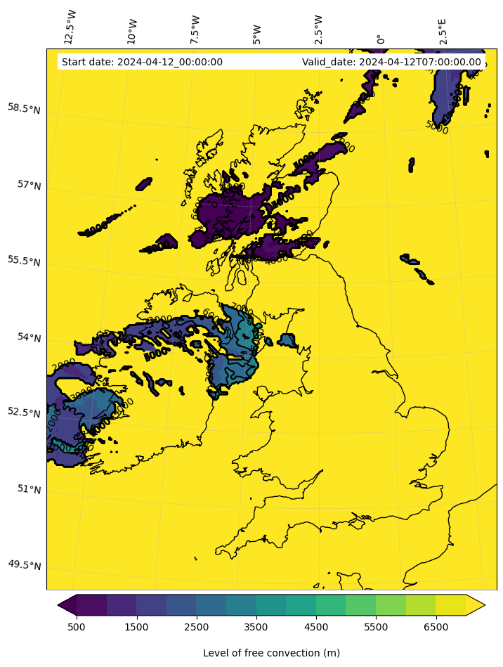 - Level of free convection (m)