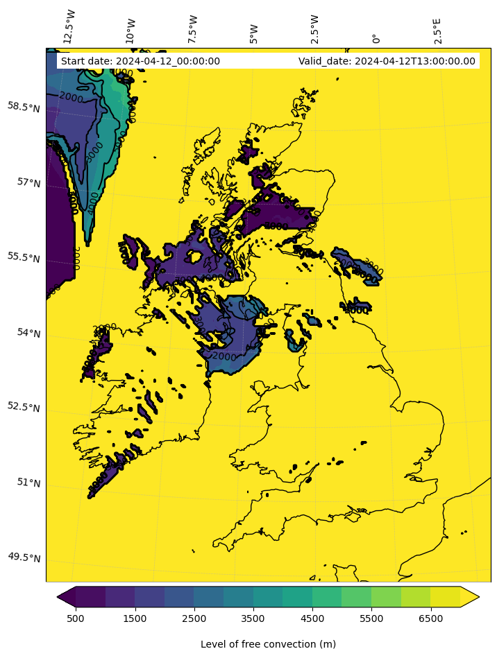 - Level of free convection (m)