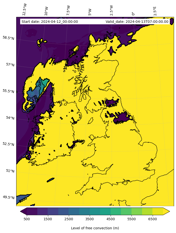 • Level of free convection (m)