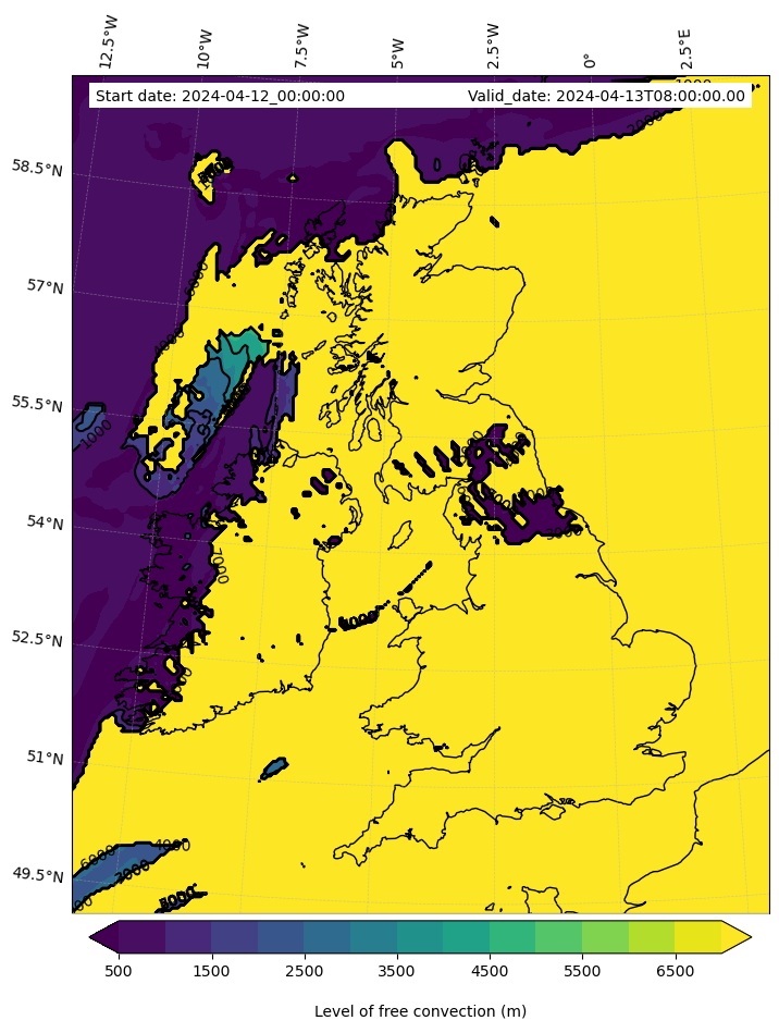 • Level of free convection (m)