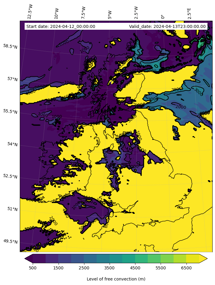- Level of free convection (m)