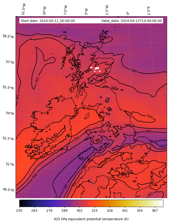 - Equivalent Potential Temperature (K)