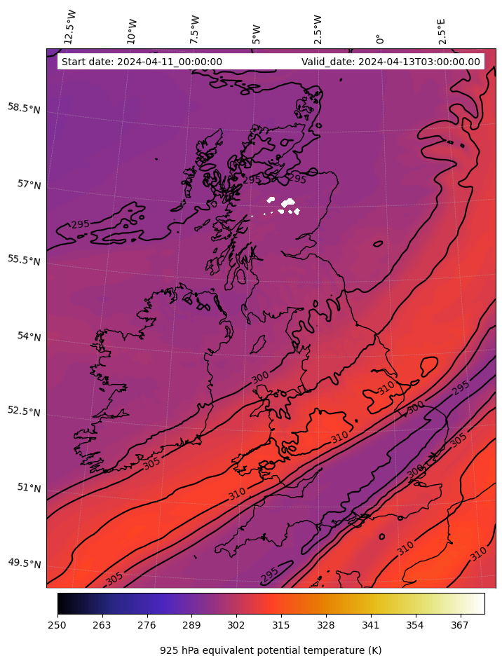 - Equivalent Potential Temperature (K)