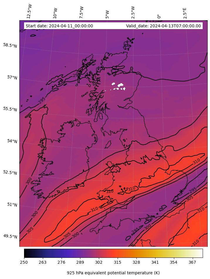 - Equivalent Potential Temperature (K)