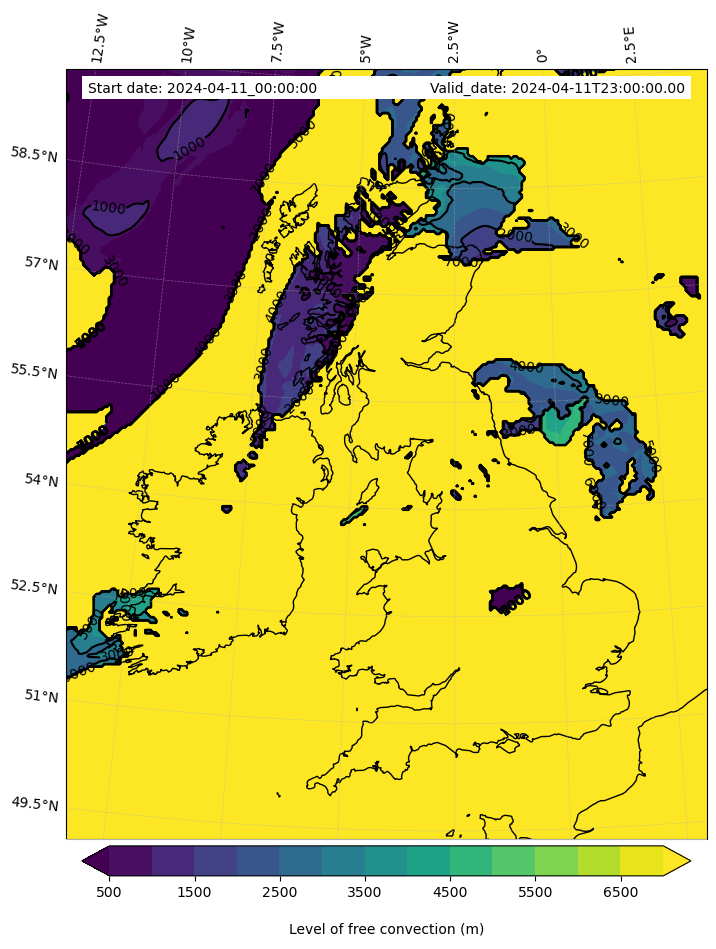 • Level of free convection (m)