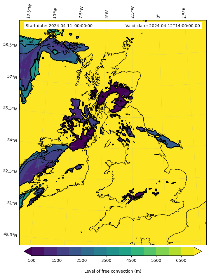 - Level of free convection (m)