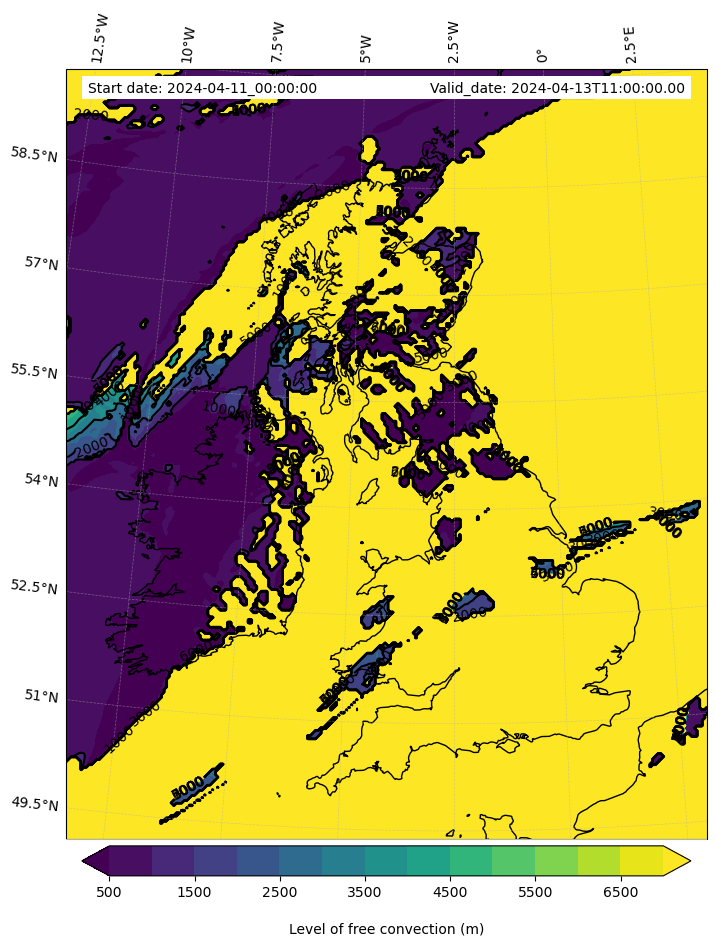 - Level of free convection (m)