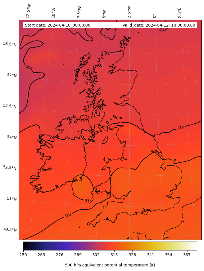 - Equivalent Potential Temperature (K)