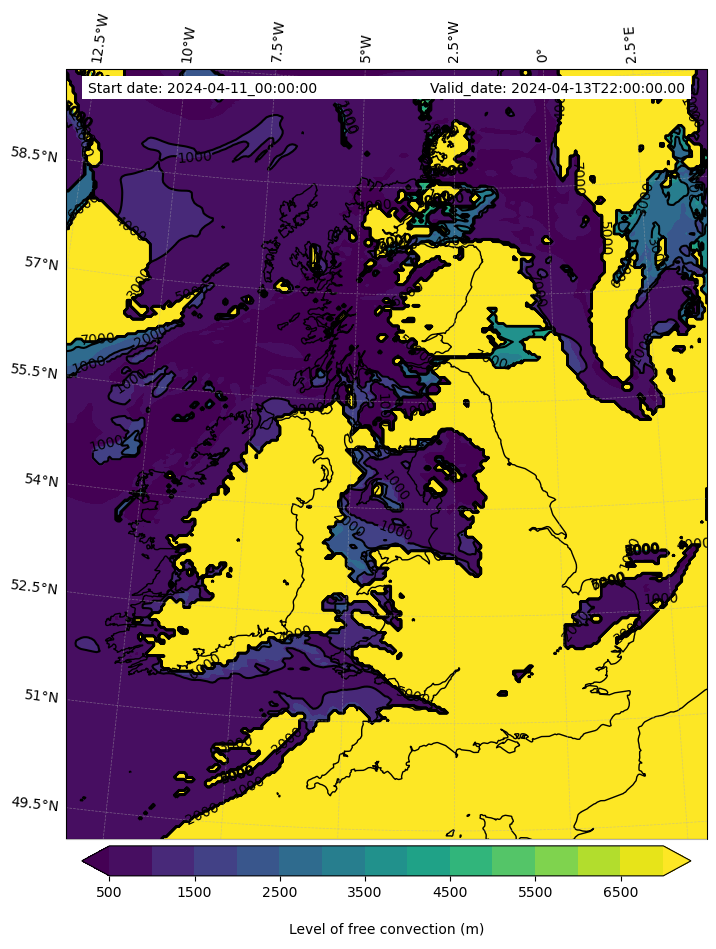 • Level of free convection (m)