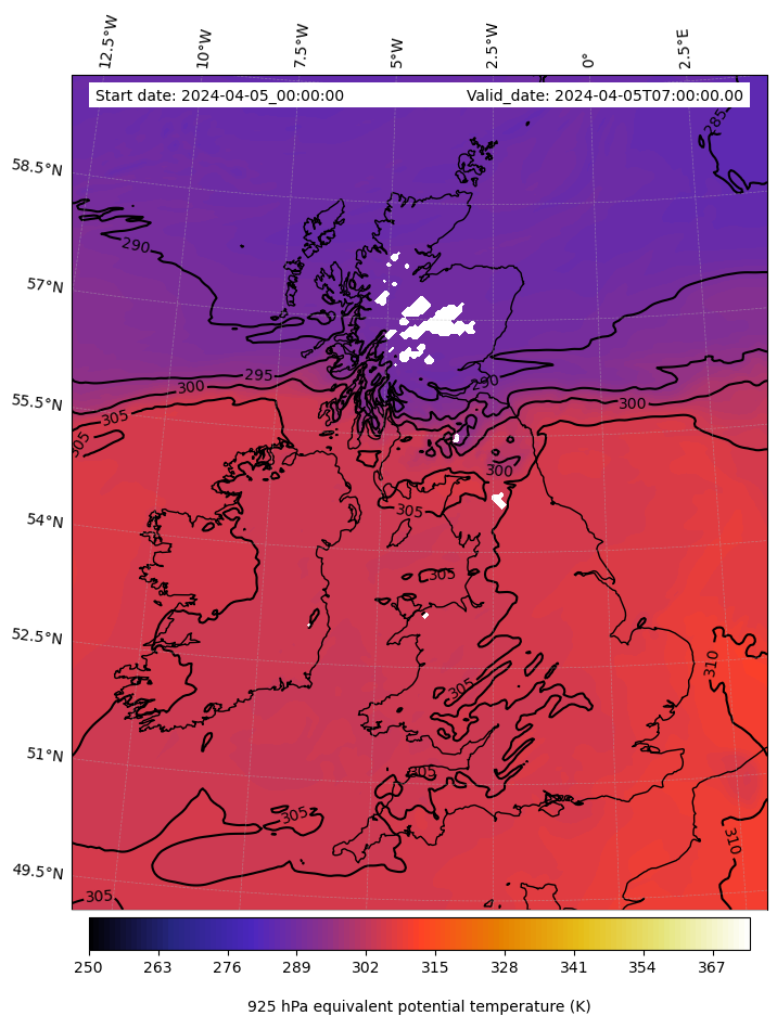 - Equivalent Potential Temperature (K)