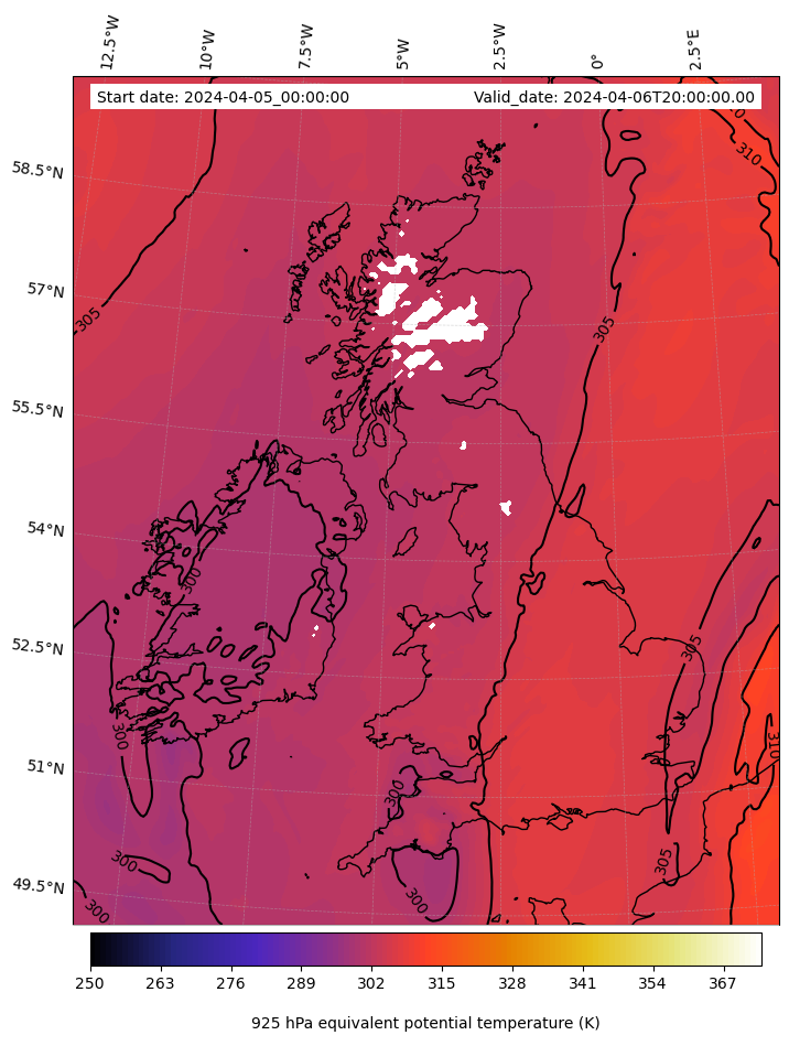 - Equivalent Potential Temperature (K)