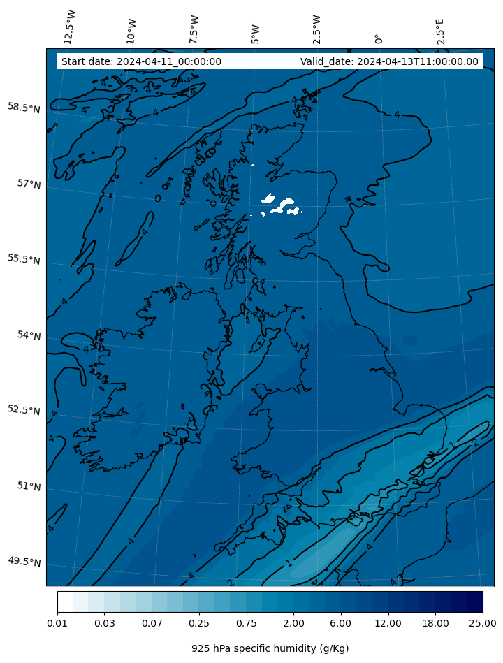 - Water vapor mixing ratio (g kg¯¹)