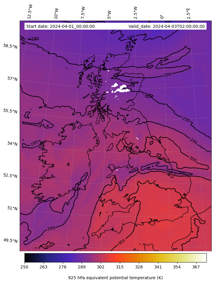 - Equivalent Potential Temperature (K)