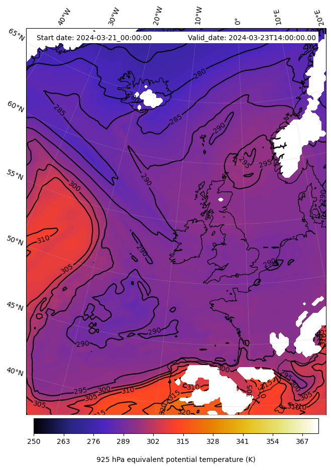 - Equivalent Potential Temperature (K)