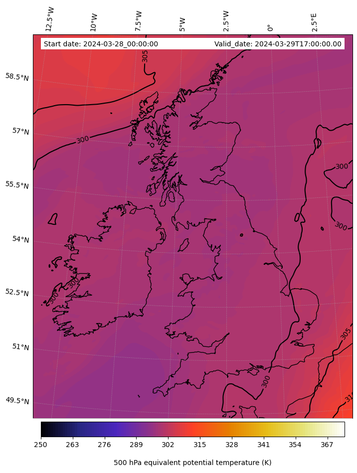 - Equivalent Potential Temperature (K)