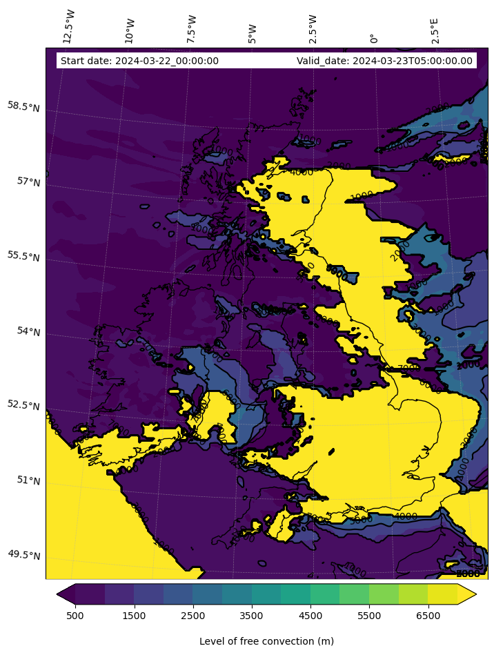 - Level of free convection (m)