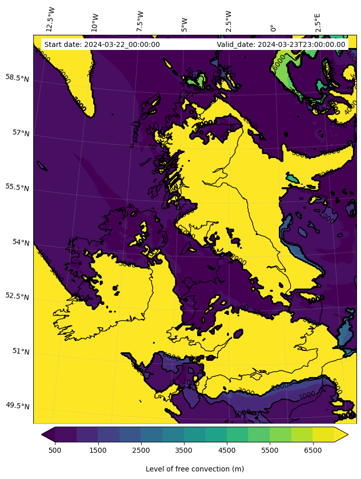 - Level of free convection (m)